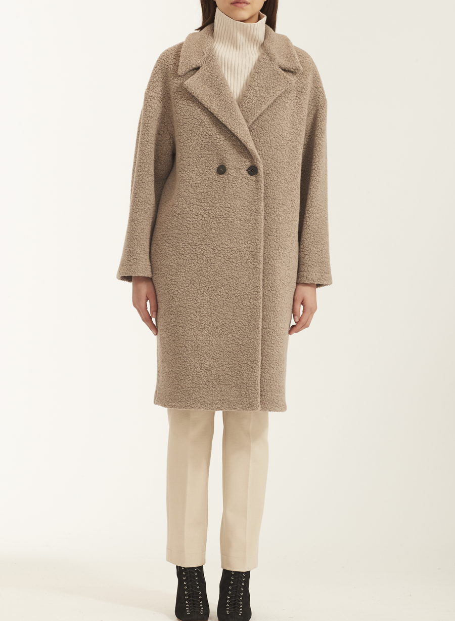 Women dropped shoulder d.b. coat bouclé